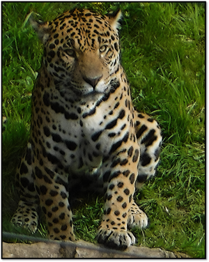 The third big cat in order of size, just smaller than the lion and tiger, at some 70 centimetres at the shoulder. Although some eight or so sub-species of jaguar were recognised as valid in former years, modern research has shown that these populations are not different enough to be regarded as sub-species in their own right. However, different populations of jaguar, despite appearing somewhat similar, do have morphological differences - the jaguar of the rainforest is more compact-built than that that lives in the open desert. All jaguars are typically found from areas of Mexico southward to central Argentina, though sightings are sometimes recorded in southern states of America. The phylogenetic placement of the jaguar remains uncertain - some studies put it as a sister-species to the lion, but others put it on its own branch. It is thought that extant jaguar populations all derive from lineages that existed some 500,000 years ago.